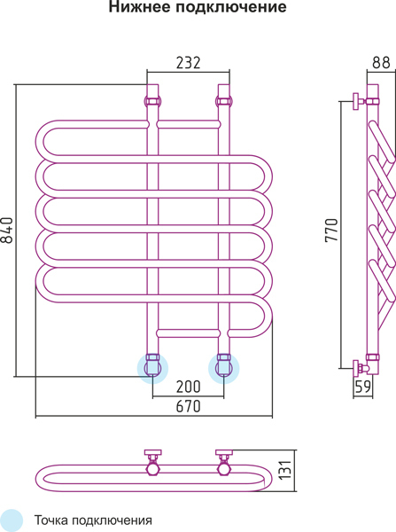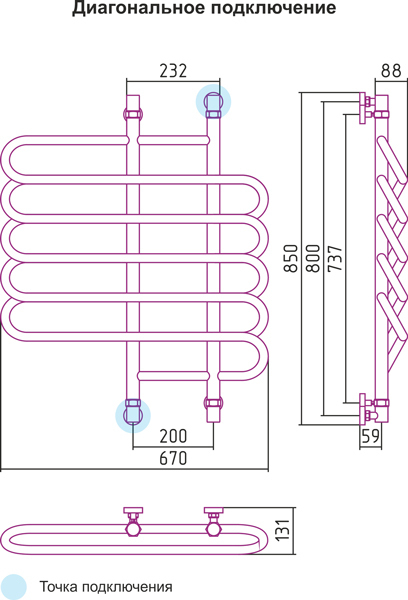 Говоря несколько по-другому, водяной полотенцесушитель Сунержа, обладает сразу несколькими отверстиями для подключения – нижнее/диагональное.