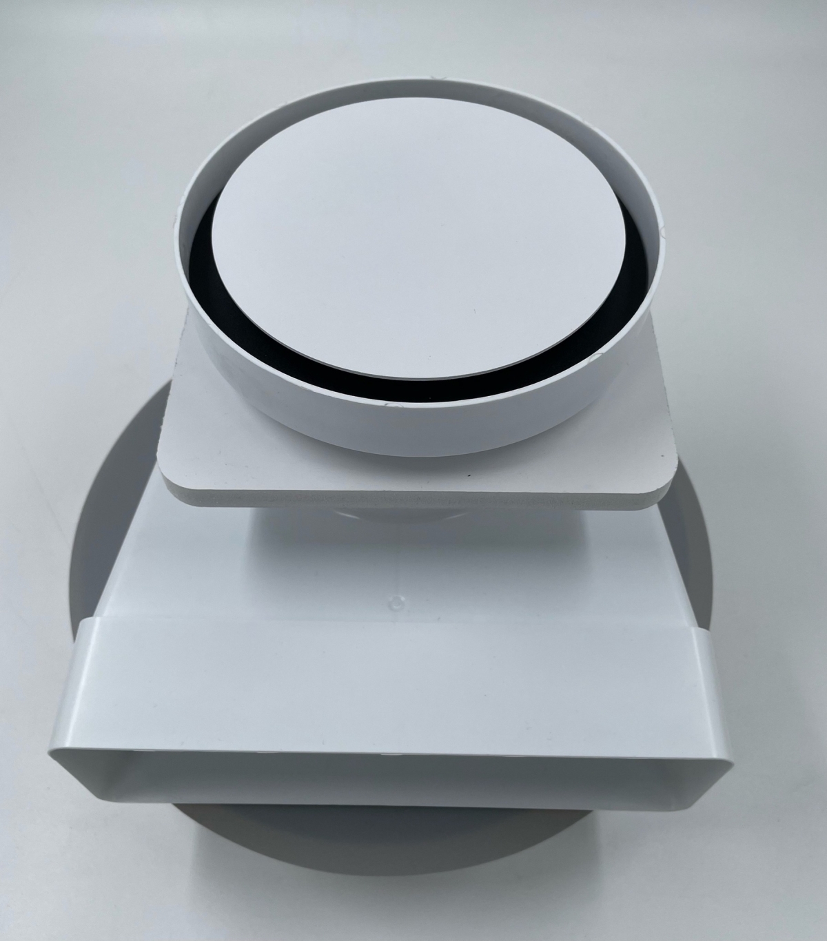 Теневой диффузор для натяжного потолка FoZa d150мм с вентилятором на шарикоподшипнике d100мм с выходом на трубу 60х120мм